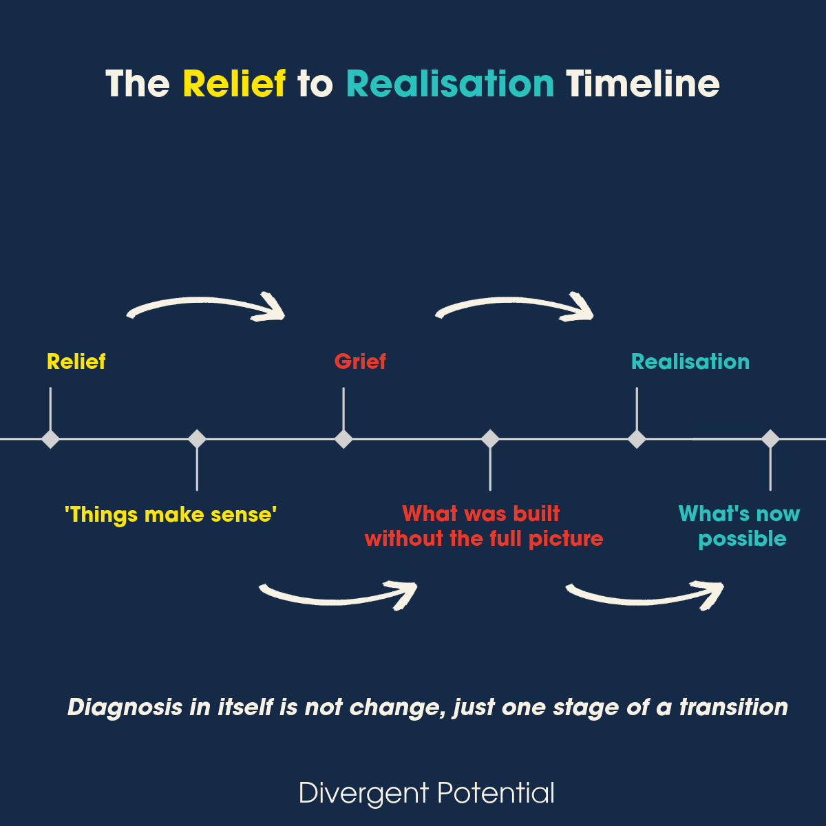 For late-identified neurodivergent leaders at senior level, those navigating a late ADHD, autism, or AuDHD diagnosis alongside an established executive career, the period after identification tends to follow a recognisable pattern, even when nothing about it feels recognisable at the time.